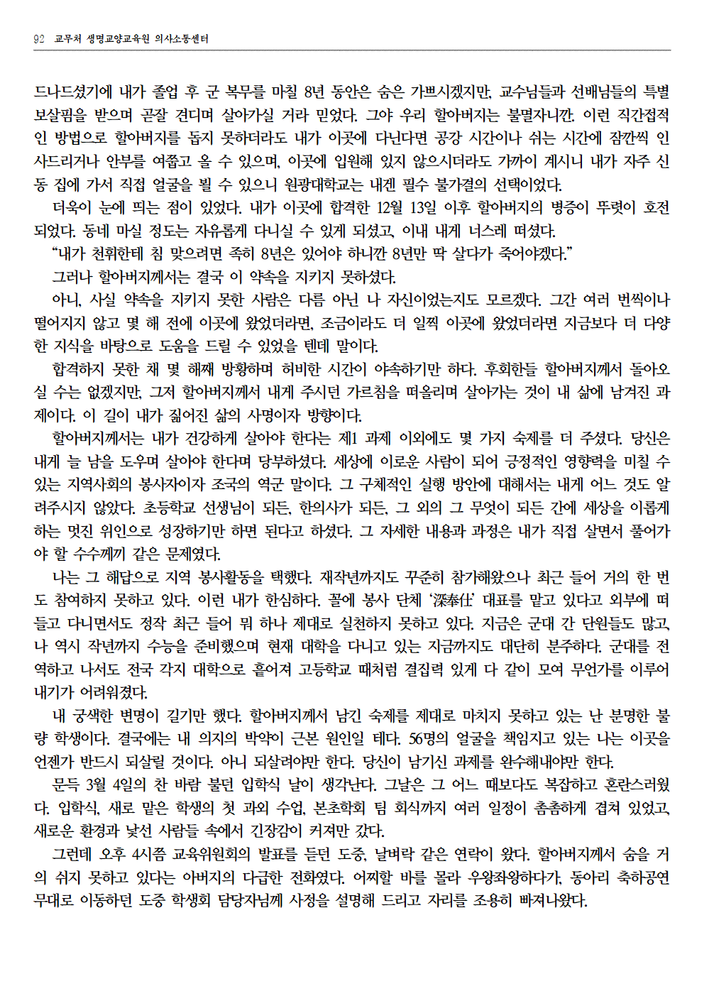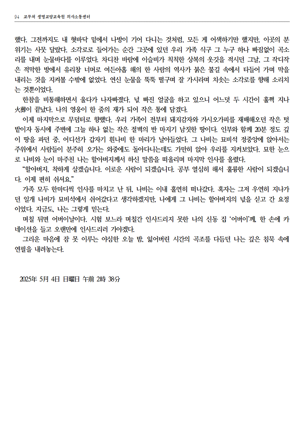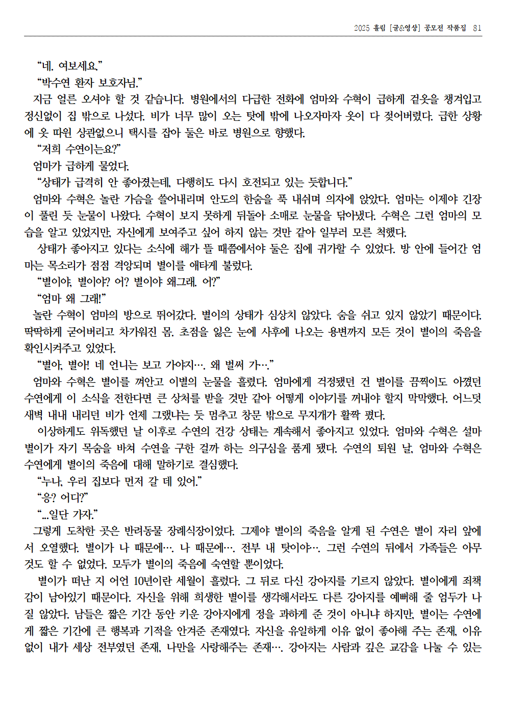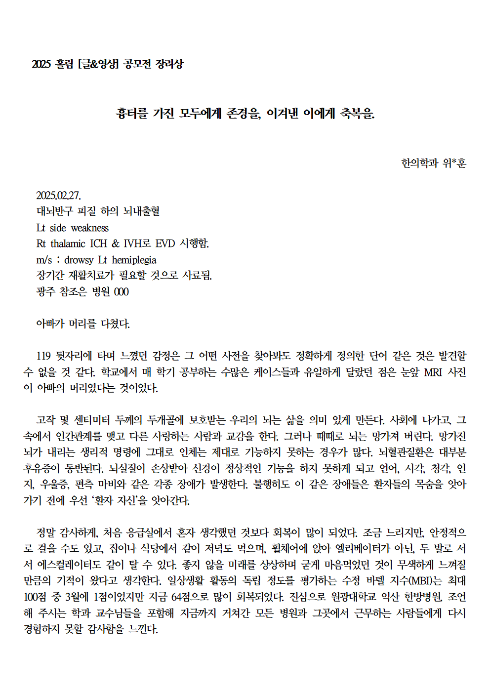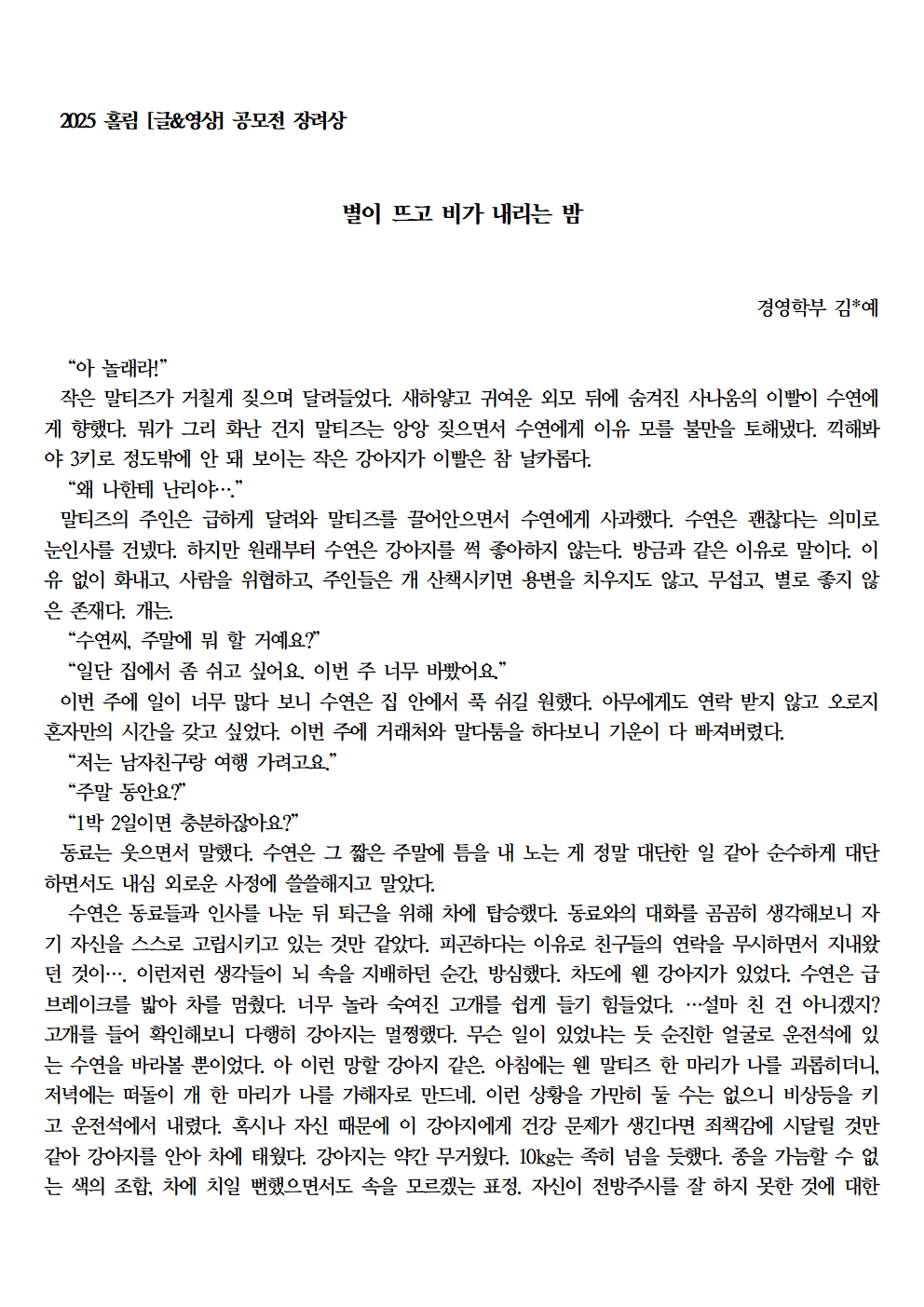 자료실 홈알림마당자료실 2025 홀림 [글&영상] 공모전 장려상 수상 작품 (항아리가 준 선물 외) 2025 홀림 [글&영상] 공모전 장려상 수상 작품 (항아리가 준 선물 외) 의사소통센터2026-01-23 페이스북 트위터 구글플러스 이메일 프린트 이전자료실다음